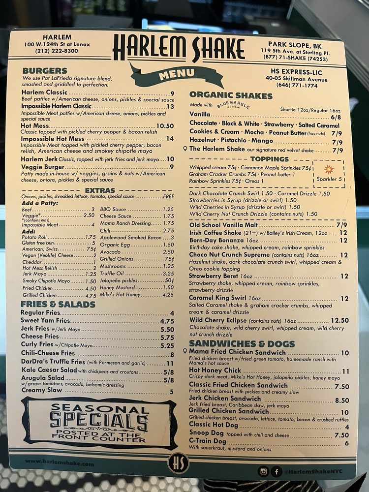 Introducing Harlem Shake, a vibrant eatery nestled in Park Slope, Brooklyn, where the essence of classic American hot dogs and burgers meets a nostalgic ambiance. As a women-owned establishment, it pays homage to Harlem's rich culture with a menu that delights the senses.